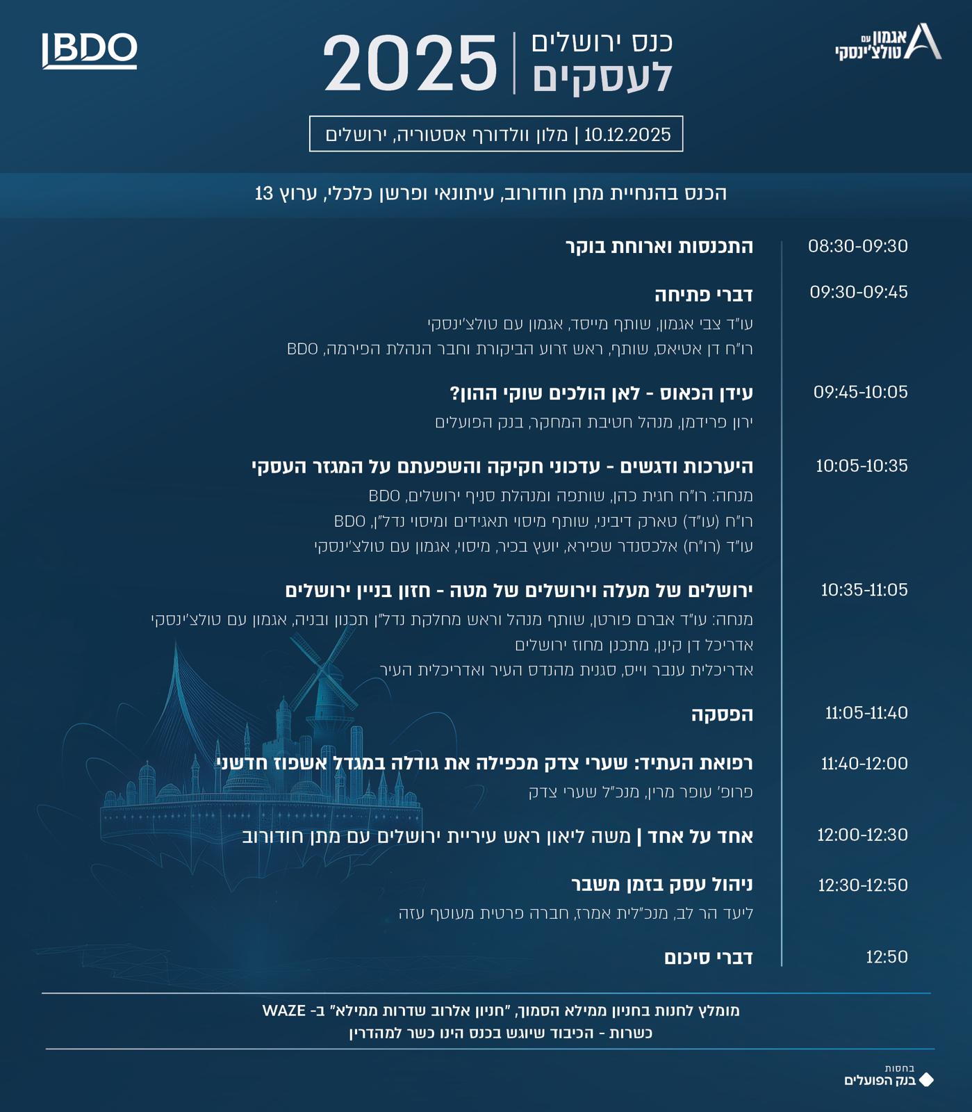 10.12.2025 | יום רביעי | 8:30 – 13:00 | מלון וולדורף אסטוריה, ירושלים